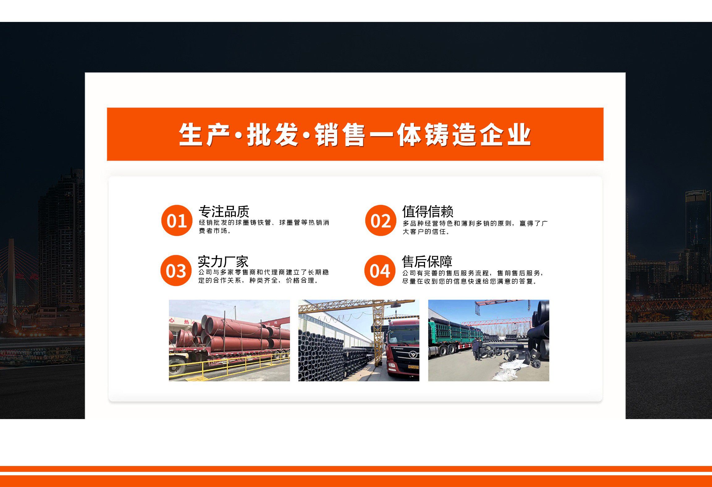 青島金源達管業(yè)有限公司主要經(jīng)營各種規(guī)格球墨鑄鐵管,球墨管,球墨鑄鐵管廠家等產(chǎn)品,質(zhì)量可靠,誠信經(jīng)營,值得信賴! 青島金源達管業(yè)有限公司始終堅持“誠信立業(yè),追求卓越,合作共贏,共同發(fā)展”,竭誠歡迎各界朋友來廠參觀指導(dǎo),洽談業(yè)務(wù)。我們愿與您攜手共進,互惠雙贏,共創(chuàng)未來! 公司堅持“以奮斗者為本”的理念,關(guān)心關(guān)愛職工,職工的獲得感、幸福感更加充實、更有保障、更可持續(xù);秉承“忠誠企業(yè)、勇于擔(dān)當、開拓創(chuàng)新、主動作為”,堅持黨建領(lǐng)航、創(chuàng)新驅(qū)動、文化塑魂、奉獻社會,全面致力于綠色、低碳、高效、高質(zhì)量發(fā)展?! ≡概c各界朋友攜手并進,共創(chuàng)未來!...